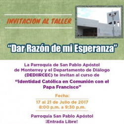 INVITACION AL TALLER DAR RAZON DE MI ESPERANZA (PARROQUIA SAN PABLO APOSTOL)