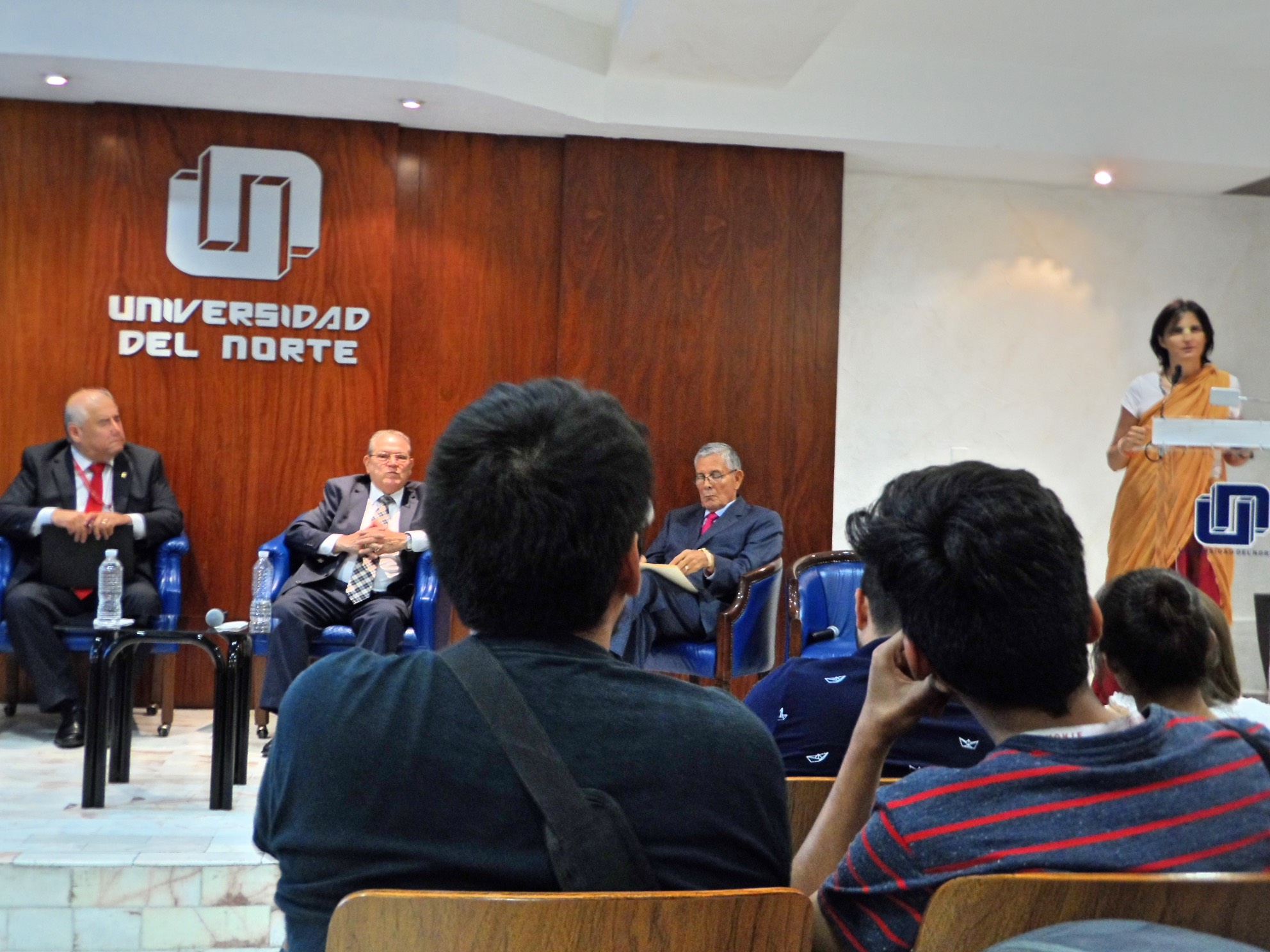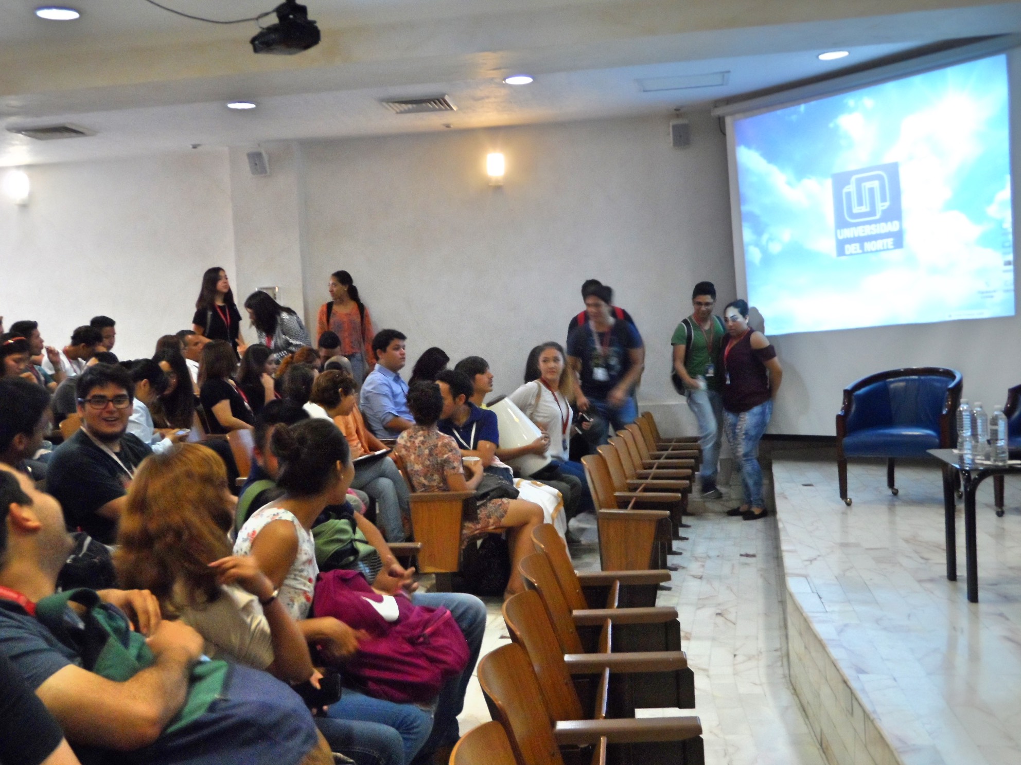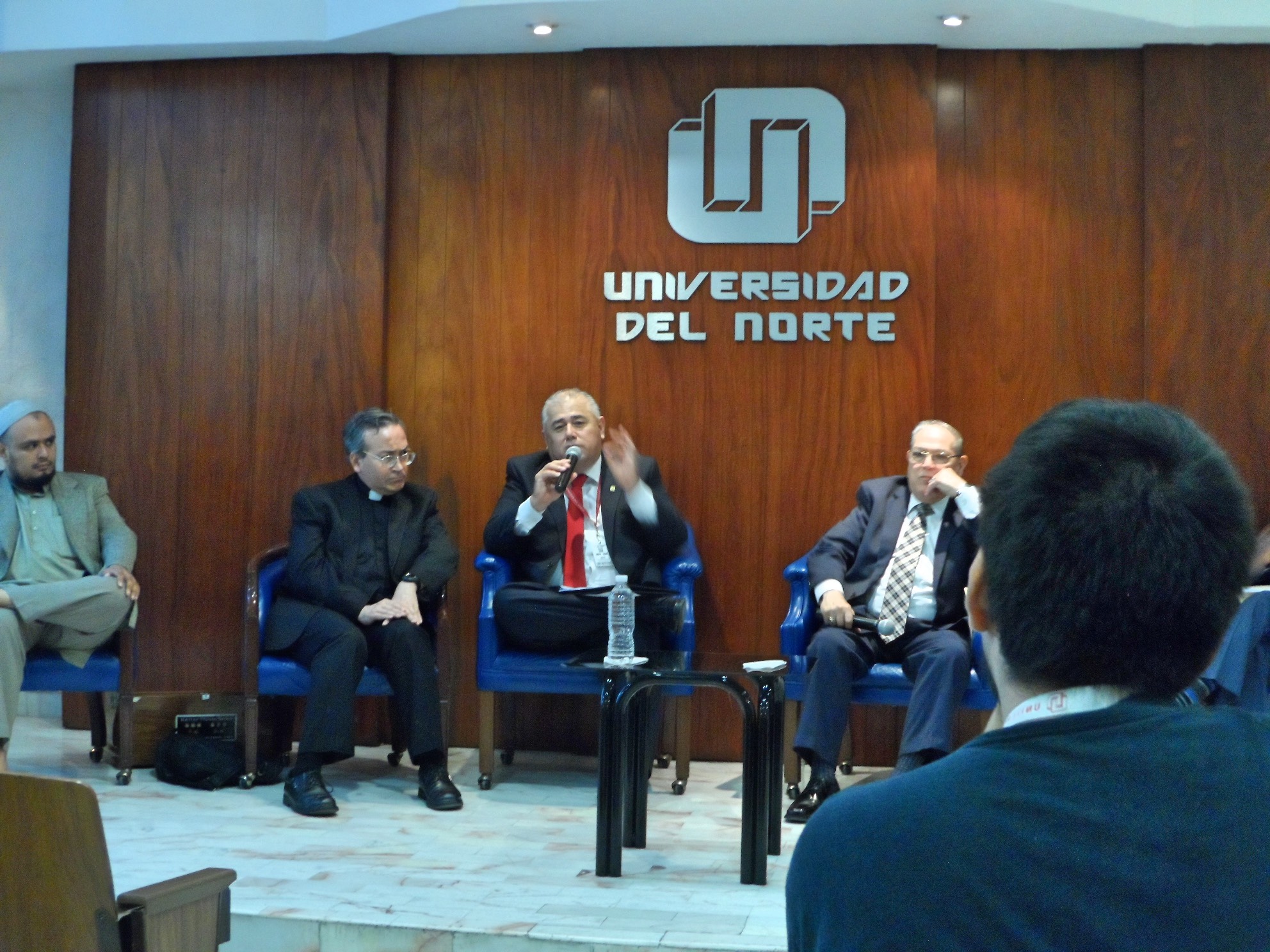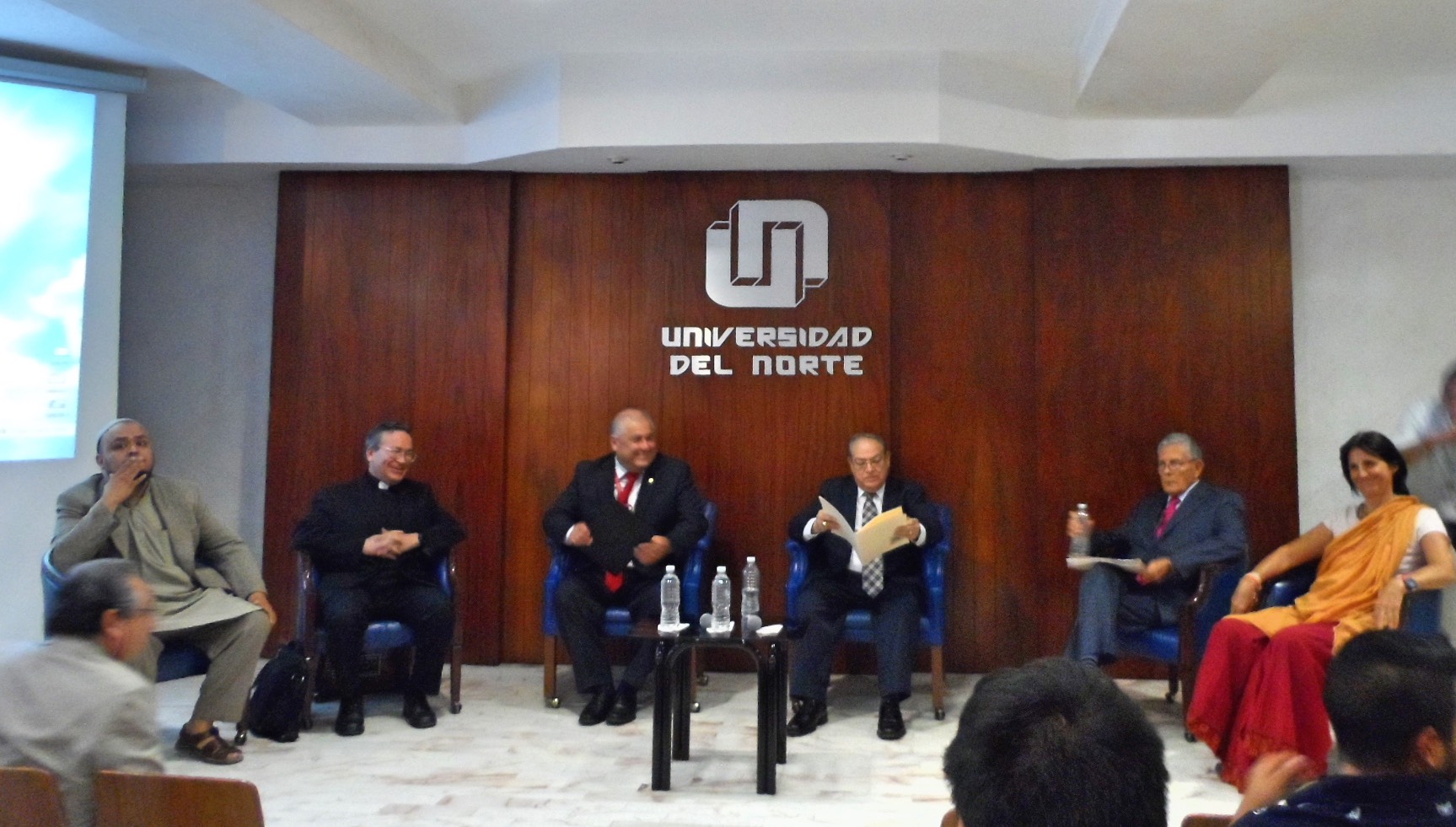 Dio inicio el diálogo con las palabras de Bienvenida del C.P. Gregorio Treviño Director de Asuntos religiosos quien agradeció la invitación a la Universidad del Norte por parte de la Directiva del plantel y dio un saludo a nombre del Gobernador del Estado Jaime Eliodoro Rdz. Calderón dando una breve charla sobre la problemática social del estado e incitando a la practica de la Compasión como camino hacia la paz y al termino de ésta el Ing. Marcelo Gzz. dirigió unas palabras por parte de la UN, después dando paso al primer participante del día, la representante de la comunidad Hinduista la Madre Diya Priya que habló a los jóvenes sobre la compasión como uno de los aspectos mas profundos a nivel universal en la práctica del Hinduismo, aclarando que esto comienza realizándolo primero como el yo (nosotros mismos) para poder trasmitirlo a los demás.
