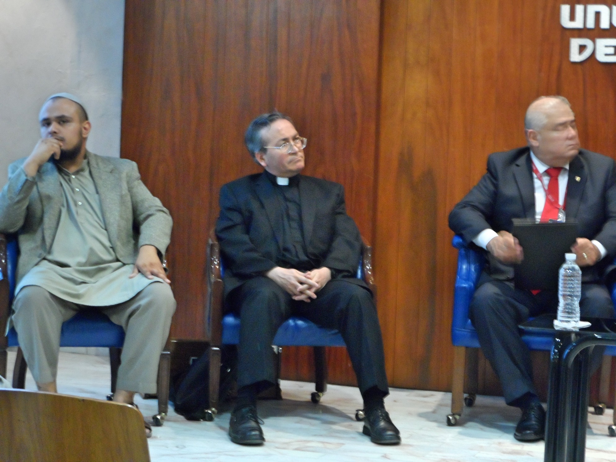 El siguiente participante fue el musulmán Mustafá Orta que también presentó un video a nombre de la Comunidad musulmana para dar una explicación de cómo se vive la compasión entre ellos y haciendo de su conocimiento a los jóvenes allí presentes, que los musulmanes están en un mes muy especial para su espiritualidad como lo es el mes del Ramadán dando una explicación de como se vive esa fiesta, y al final les leyó una cita del Corán que habla que Dios creó a los hombres en forma diferente para que entre todo el género humano se acerquen unos a otros a conocerse entre sí, que dialoguen y valoren la riqueza de cada uno pero en lo que no hay diferencia es que en lo que debe unir a todos son dos cosas: la misericordia y la compasión.