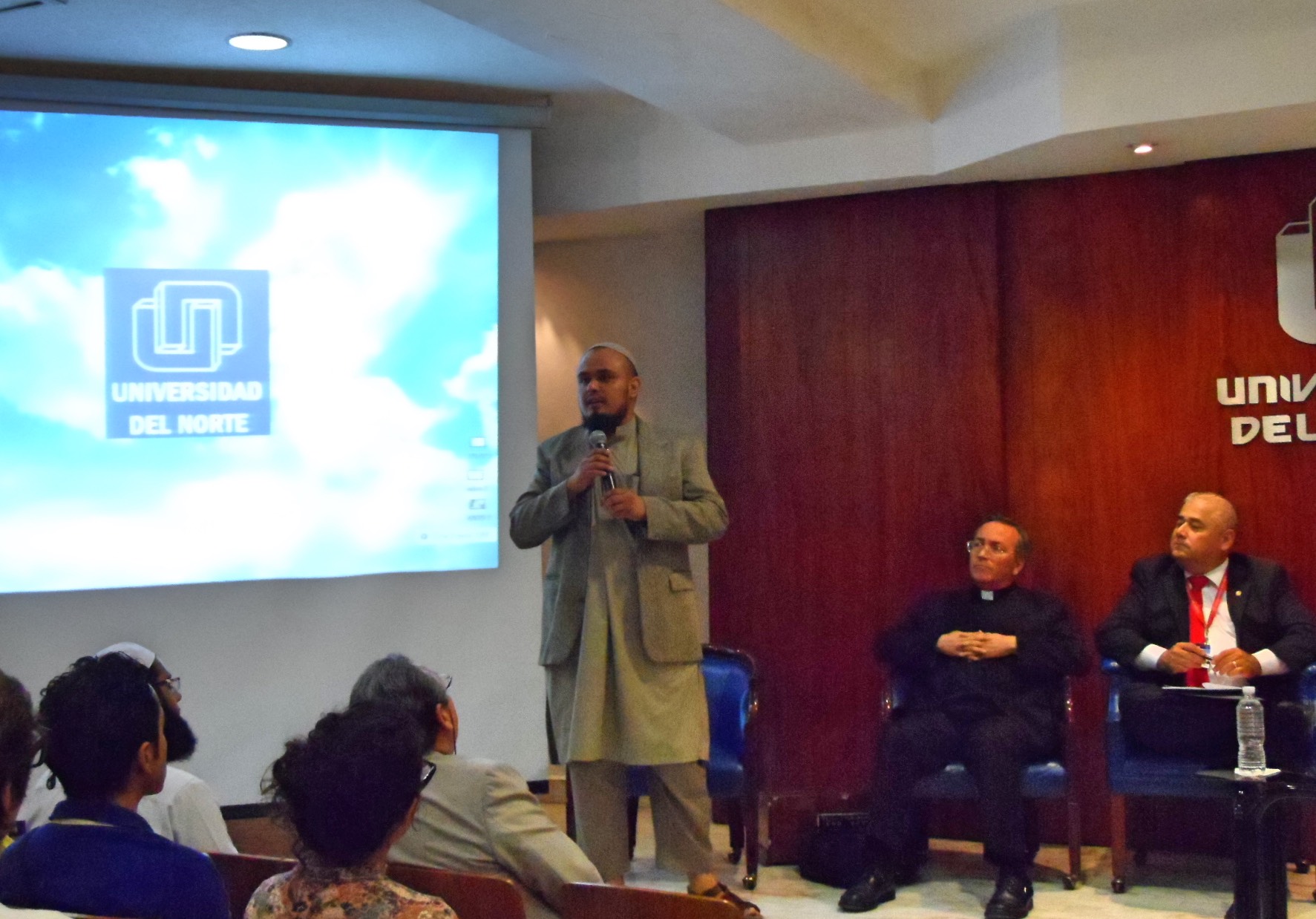El día de ayer 7 de junio de 2017 se llevó a cabo con gran éxito la 6a Jornada Compasiva de Diálogo por la Justicia y la Paz, en la Universidad del Norte. Los invitados especiales de distintas religiones que estuvieron en el panel para hablar sobre el tema de “La Compasión“ fueron: Mustafá Orta Morales vocero y representante de la Comunidad musulmana de Mty., el Pbro. Isaí Montoya Carvajal representante del Concilio Nacional de las Asambleas de Dios, la Madre Diya Priya representante de la Comunidad Hinduista de Mty., Dr. Gregorio Treviño Lozano Director de Asuntos Religiosos del Gobierno del Estado de N.L., el Lic. Martin Antonio Rdz. Canales Director de la Universidad del Norte, el Ing. Marcelo Gzz. Villarreal Rector de la Universidad del Norte y el Pbro. Guillermo Escobedo Valle del Departamento de Diálogo de la Arquidiócesis Católica de Monterrey (DEDIIRCEC) en representación del Arzobispo Mons. Rogelio Cabrera López.